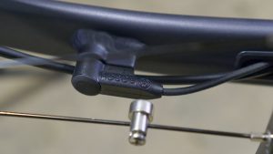 Verzet de sensor zodat deze dicht langs de sensor gaat. Op de sensor zijn een streepje en het Bosch logo te zien. Verzet de magneet zodat deze heir vlak langs gaat wanneer het wiel draait.